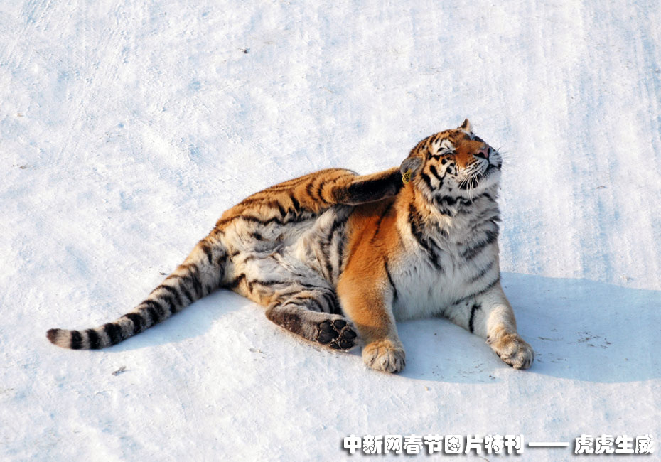 1月13日,黑龍江東北虎林園,老虎在雪地中嬉戲追逐。(王少華 張書儉 攝) 圖片來(lái)源:中國(guó)新聞網(wǎng)
