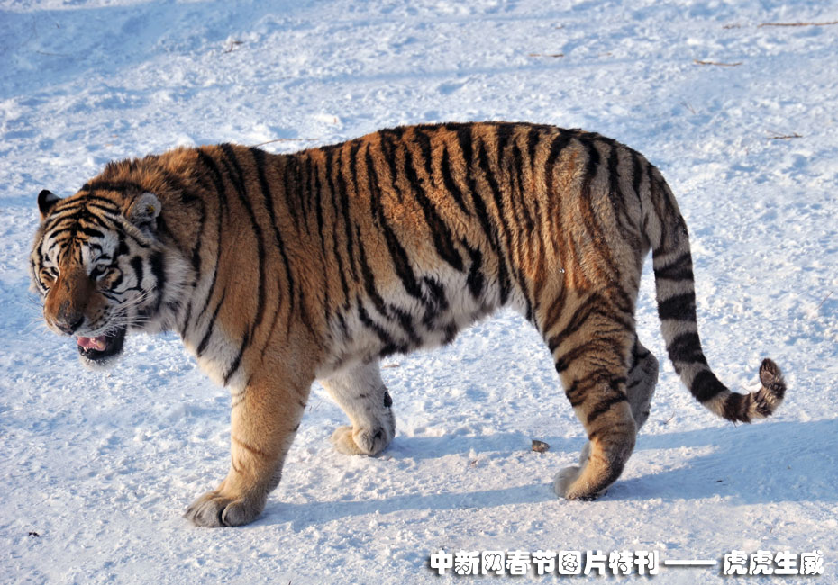 1月13日,黑龍江東北虎林園,老虎在雪地中嬉戲追逐。(王少華 張書儉 攝) 圖片來源:中國(guó)新聞網(wǎng)