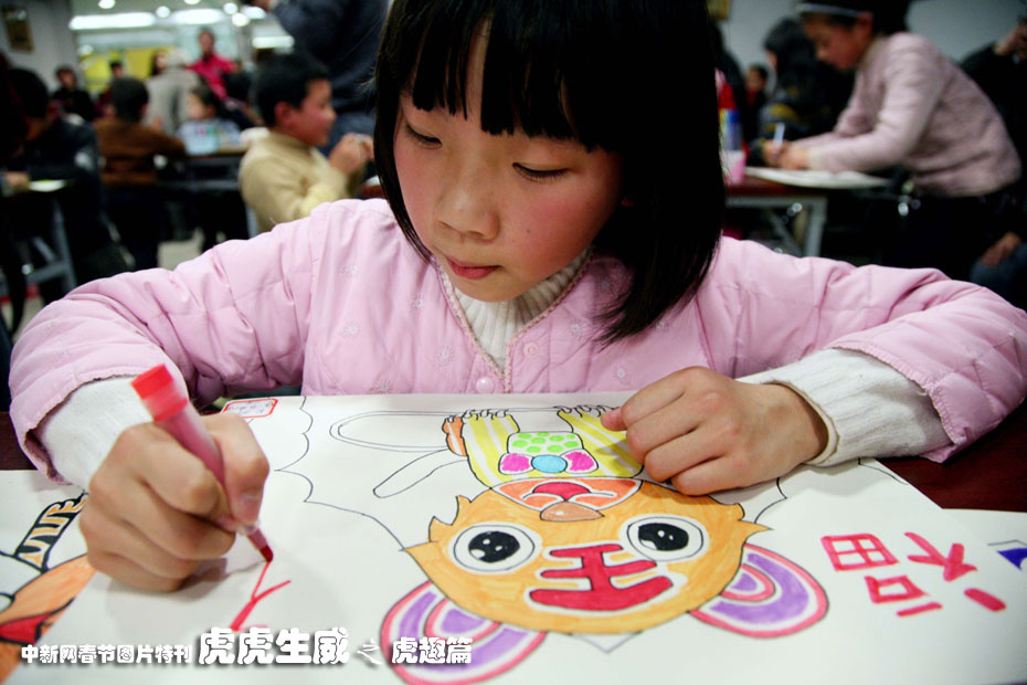 1月23日,“百童畫百虎”活動(dòng)在南京鳳凰書城舉行,約100名4歲到14歲的小朋友現(xiàn)場(chǎng)切磋畫技,畫出自己心中最可愛(ài)的老虎模樣,迎接即將到來(lái)的虎年。中新社發(fā) 鐘山 攝