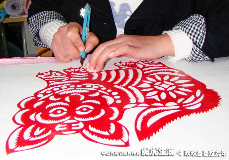 12月21日,重慶市云陽教師進修學院08級幼教班的學生在利用美術課“剪老虎”。中新社發(fā) 饒國君 攝