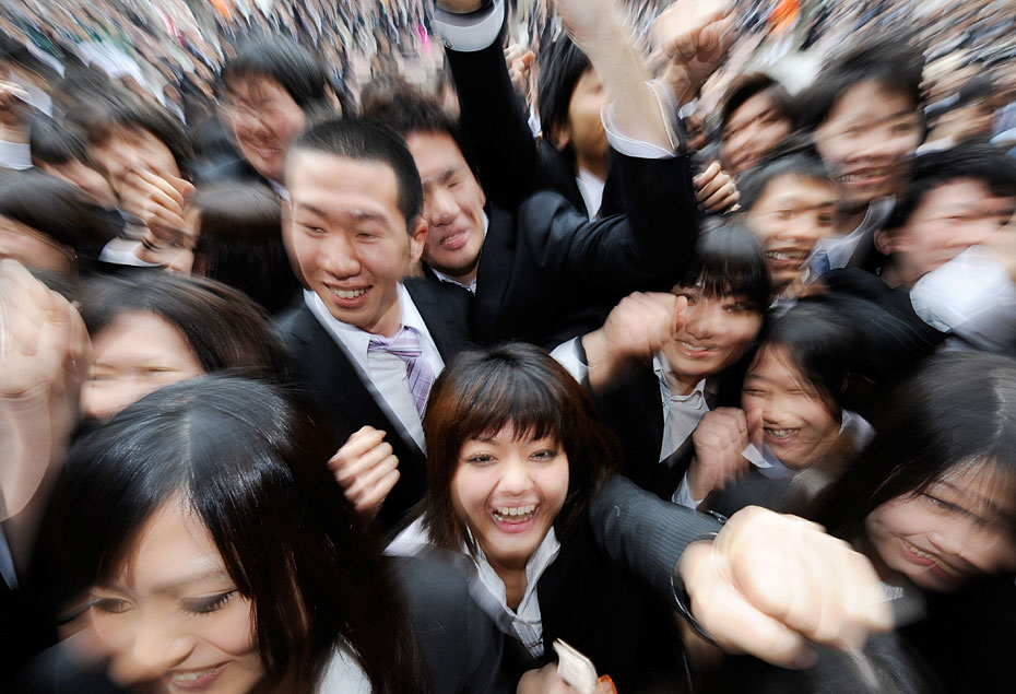 2月10日,日本東京職業(yè)學校的學生在求職動員會上伸出拳頭展現(xiàn)信心。日本的失業(yè)率達5%,2011屆畢業(yè)生將面臨嚴峻就業(yè)形式。圖片來源:中國新聞網(wǎng)