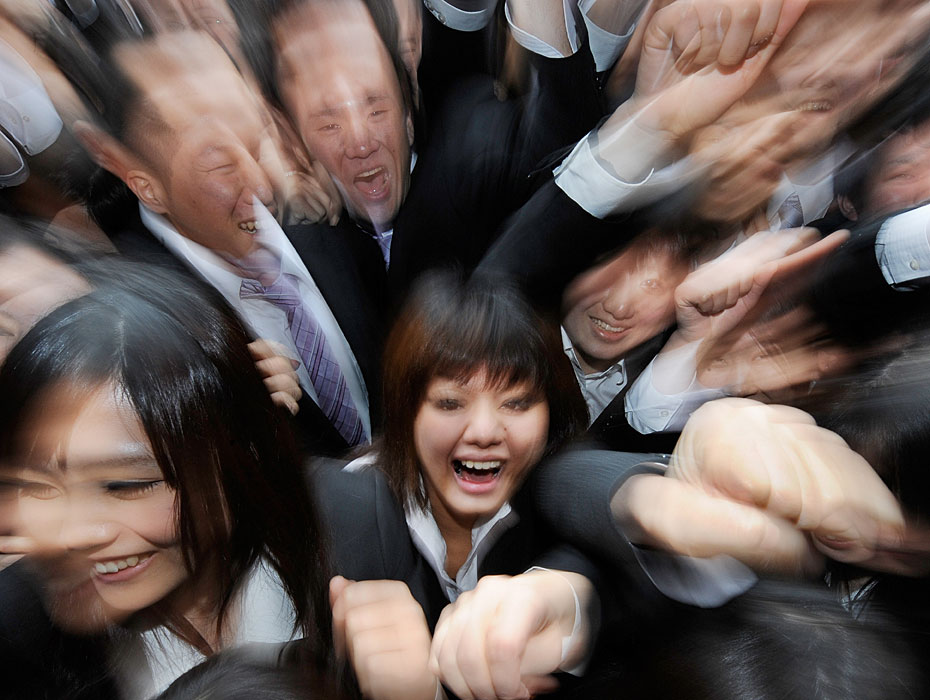 2月10日,日本東京職業(yè)學(xué)校的學(xué)生在求職動(dòng)員會(huì)上伸出拳頭展現(xiàn)信心。日本的失業(yè)率達(dá)5%,2011屆畢業(yè)生將面臨嚴(yán)峻就業(yè)形式。圖片來源:中國新聞網(wǎng)