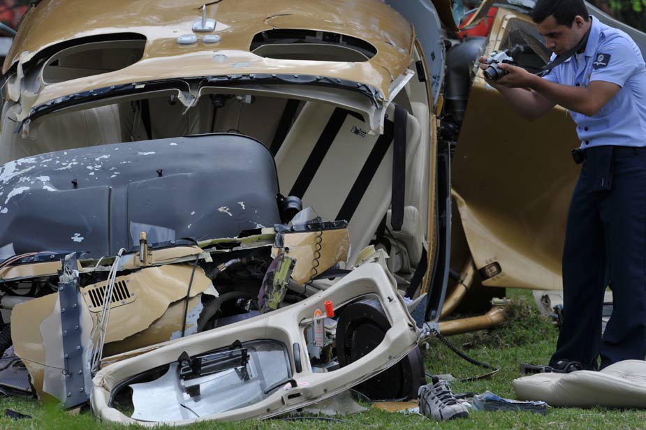 當(dāng)?shù)貢r(shí)間2月10日上午,巴西記錄電視臺(tái)的一架直升機(jī)在巴西圣保羅南部一賽馬俱樂部的草坪上墜落,一名飛行員當(dāng)場(chǎng)身亡。圖片來源:中國(guó)新聞網(wǎng)