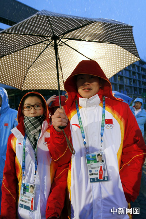 當(dāng)?shù)貢r(shí)間2月10日,中國(guó)代表團(tuán)在溫哥華冬奧會(huì)奧運(yùn)村舉行升旗儀式。升旗儀式結(jié)束后,中國(guó)代表團(tuán)團(tuán)長(zhǎng)劉鵬帶領(lǐng)代表團(tuán)成員展開(kāi)橫幅高聲向全體國(guó)人送上新春祝福。中新社記者 盛佳鵬 攝