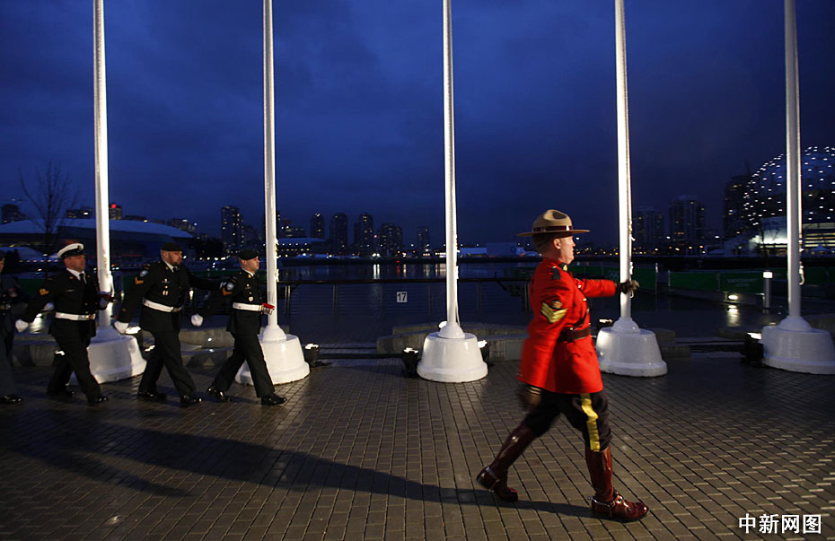 當(dāng)?shù)貢r(shí)間2月10日,中國(guó)代表團(tuán)在溫哥華冬奧會(huì)奧運(yùn)村舉行升旗儀式。升旗儀式結(jié)束后,中國(guó)代表團(tuán)團(tuán)長(zhǎng)劉鵬帶領(lǐng)代表團(tuán)成員展開(kāi)橫幅高聲向全體國(guó)人送上新春祝福。中新社記者 盛佳鵬 攝