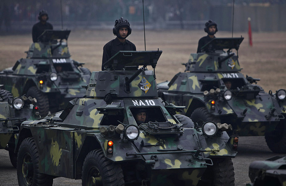 當?shù)貢r間2月12日,尼泊爾士兵在首都加德滿都舉行了建軍節(jié)閱兵式。尼泊爾總統(tǒng)和總參謀長檢閱了受閱部隊。圖片來源:中國新聞網(wǎng)