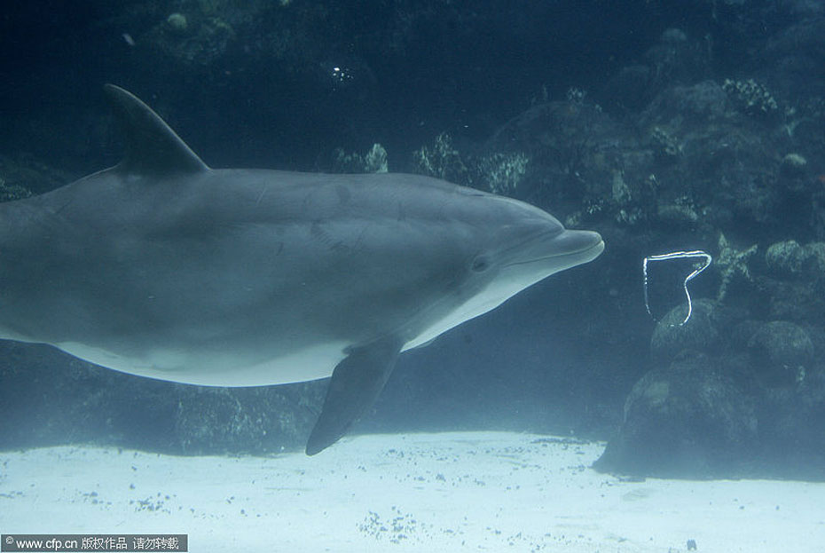 近日,美國奧蘭多海洋世界的一只寬吻海豚吹出“心形”氣泡,似乎要在情人節(jié)來臨前夕傳達濃濃愛意。圖片來源:CFP