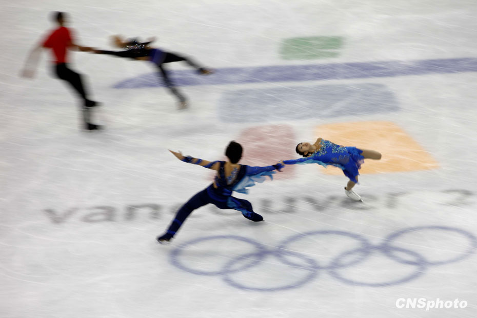 當(dāng)?shù)貢r間2月13日,中國花樣滑冰隊龐清/佟健、張丹/張昊在溫哥華太平洋體育館,利用最后的休息時間重復(fù)練習(xí)積極備戰(zhàn)即將到來的比賽。中新社記者 盛佳鵬 攝