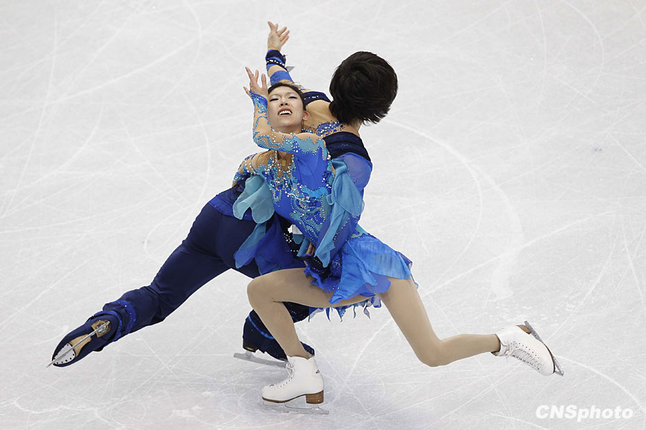 當?shù)貢r間2月13日,中國花樣滑冰隊龐清/佟健、張丹/張昊在溫哥華太平洋體育館,利用最后的休息時間重復(fù)練習(xí)積極備戰(zhàn)即將到來的比賽。中新社記者 盛佳鵬 攝