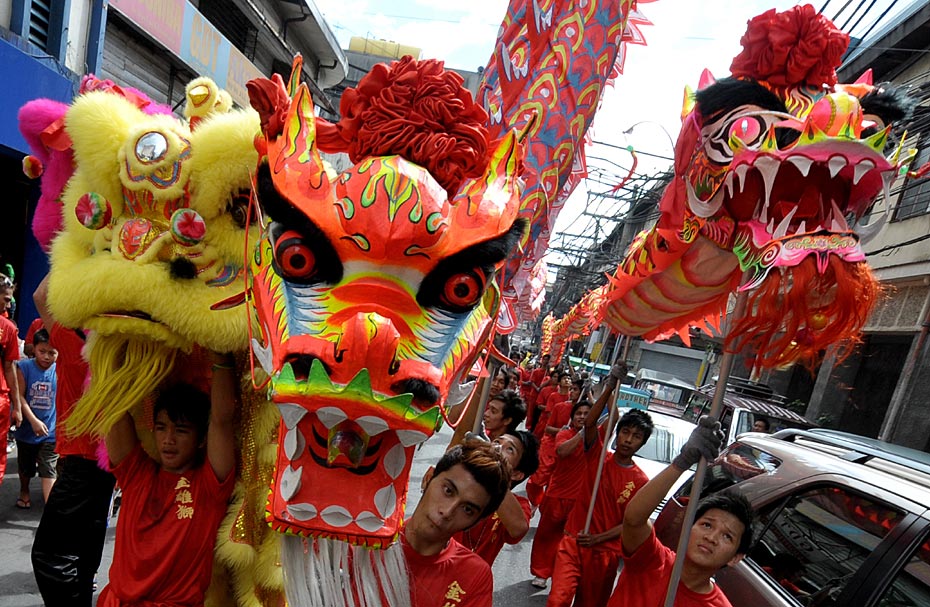 圖為菲律賓馬尼拉中國(guó)城的居民在舞龍慶祝新年。