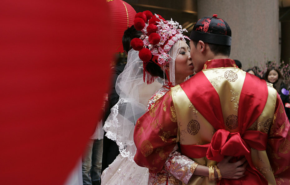圖為香港市民在正月初一大婚,雙喜臨門。