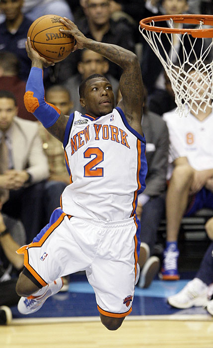 2月14日,09-10賽季NBA全明星賽進入第二日,萬眾矚目的扣籃大賽開幕。紐約尼克斯隊的羅賓遜不負眾望,第三次獲得扣籃王桂冠,超越了著名球星喬丹。圖片來源:中國新聞網(wǎng)
