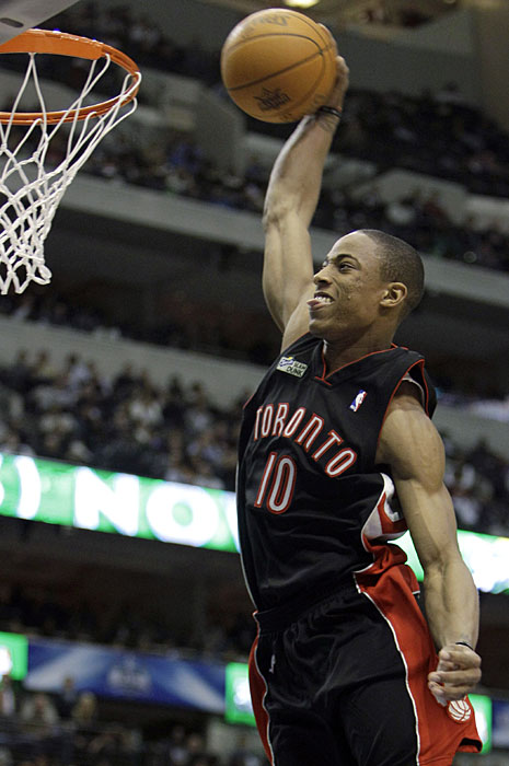 圖為多倫多猛龍隊(duì)的德羅贊進(jìn)行扣籃表演。