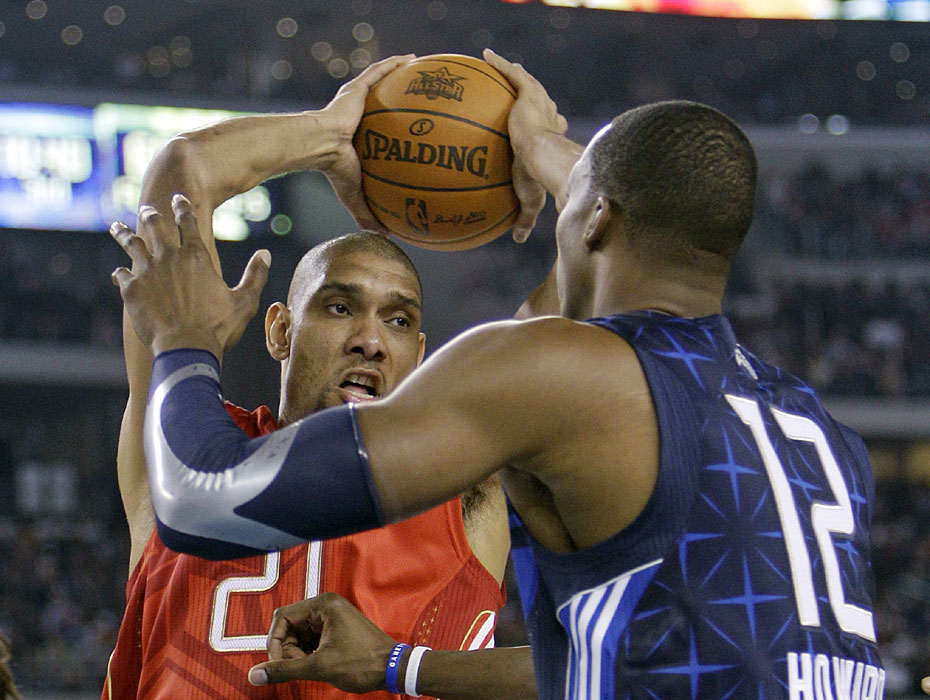 圖為西部明星隊球員企圖將球出手。