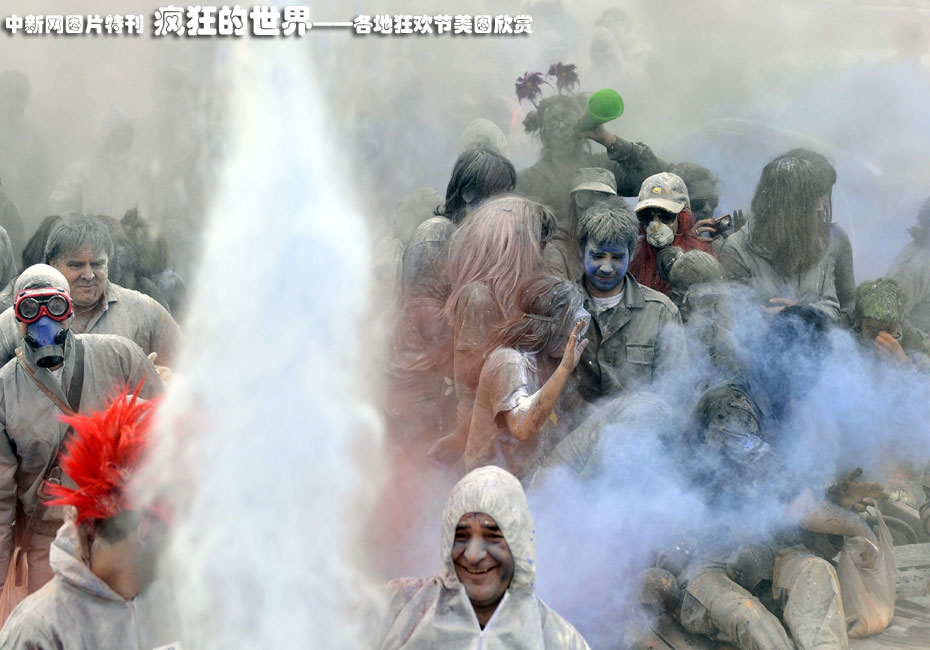 2月15日,希臘港口加拉西迪,狂歡者在街頭參加“面粉大戰(zhàn)”。圖片來源:中國新聞網(wǎng)