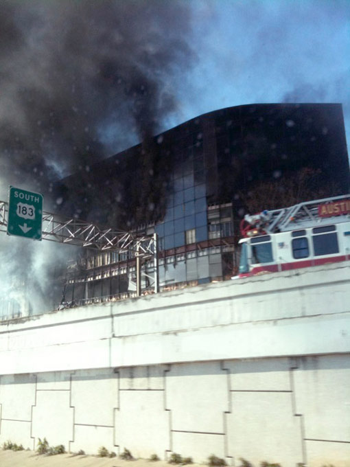 一架低空飛行的小型飛機(jī)18日撞入德克薩斯州奧斯汀市國(guó)稅局的辦公大樓,當(dāng)?shù)毓賳T表示這可能是一件蓄謀事件。圖片來源:中國(guó)新聞網(wǎng)