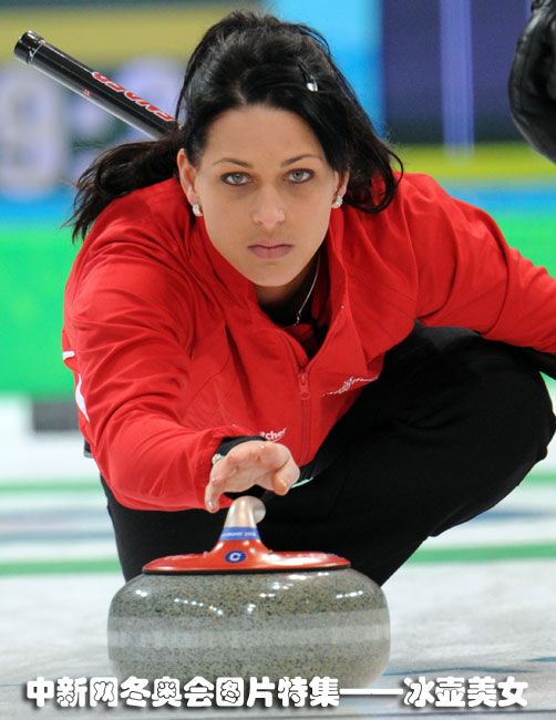本屆溫哥華冬奧會上,最受人矚目的項目應(yīng)該就算是冰壺了。冰壺是一項智慧的運動,女子冰壺運動員不僅擁有美麗的容顏,還有一種獨特的氣質(zhì)!氨鶋孛琅币渤蔀榱水斚碌木W(wǎng)絡(luò)熱詞。下面讓我們領(lǐng)略一下本屆冬奧會上的“冰壺美女”。圖為瑞士女子冰壺隊的三壘選手。