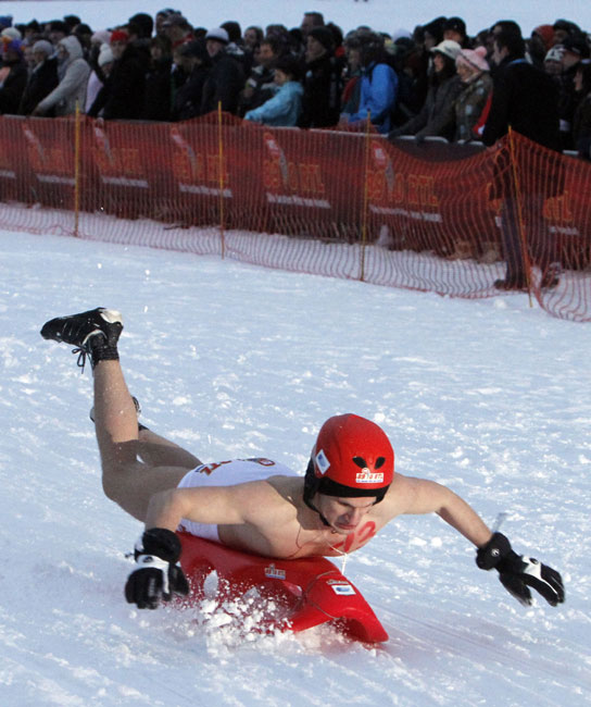 德國小鎮(zhèn)舉行雪天裸體滑行大賽
