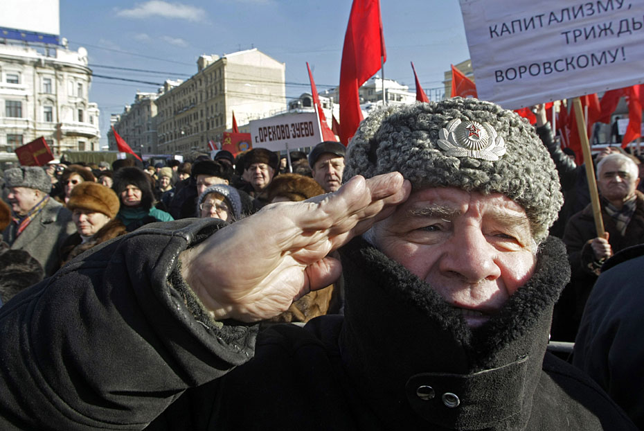 2月23日,俄羅斯莫斯科,示威者參加俄羅斯共產(chǎn)黨組織的集會(huì),抗議軍隊(duì)改革。圖片來源:中國新聞網(wǎng)