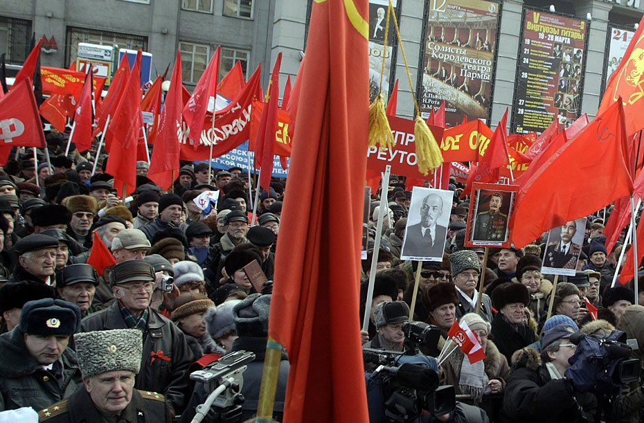 2月23日,俄羅斯莫斯科,示威者參加俄羅斯共產(chǎn)黨組織的集會(huì),抗議軍隊(duì)改革。圖片來源:中國(guó)新聞網(wǎng)