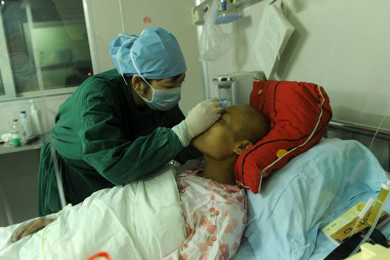 圖為病房內邵帥的母親被護士照料。朱嘉磊/CFP