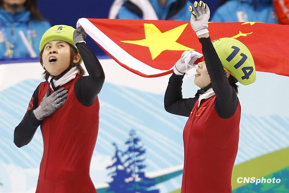 北京時(shí)間27日中午,中國(guó)選手王濛在2010年溫哥華冬奧會(huì)短道速滑女子1000米的決賽中摘得金牌。圖片來(lái)源:中國(guó)新聞網(wǎng)