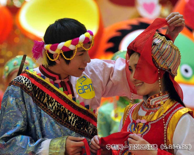 為迎接元宵節(jié),香港創(chuàng)紀(jì)之城將舉行三大特色少數(shù)民族婚禮,包括最多人口的壯族、好客的苗族和能歌善舞的蒙古族。25日,商場預(yù)演蒙古族新郎迎接新娘片段。圖片來源:中國新聞網(wǎng)>>點(diǎn)擊觀看詳細(xì)內(nèi)容