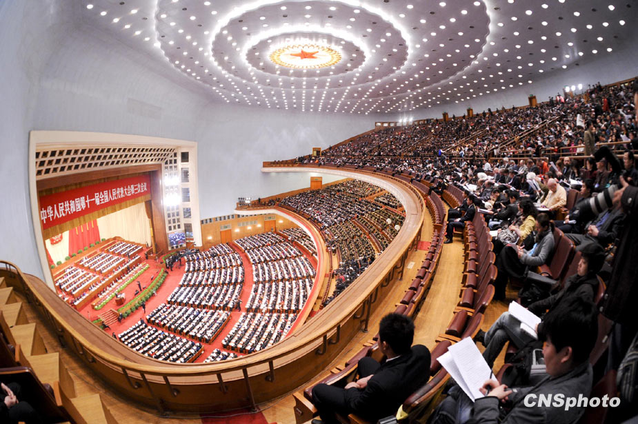 3月5日上午9時,十一屆全國人大三次會議在北京隆重開幕。國務(wù)院總理溫家寶作政府工作報告。圖片來源:中國新聞網(wǎng)
