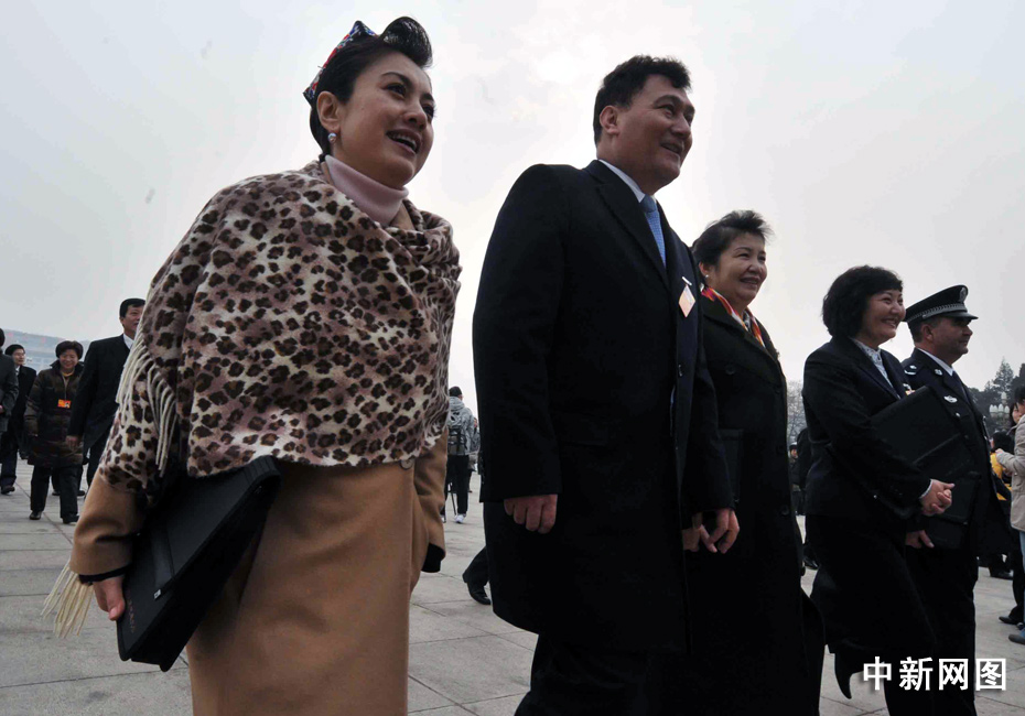 十一屆全國(guó)人大三次會(huì)議3月5日在北京開幕,各民族人大女代表的服飾靚麗多彩,在天安門廣場(chǎng)前大展英姿。 中新社記者 賈國(guó)榮 攝