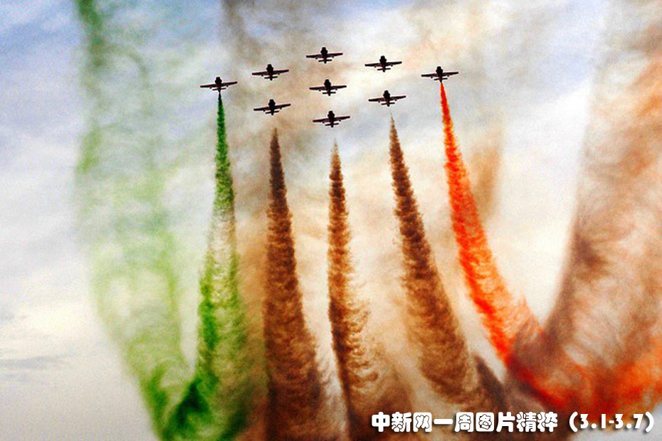 近日,印度空軍“光芒”特技飛行隊(duì)參加了空中演習(xí)。演習(xí)地點(diǎn)位于拉賈斯坦邦博克蘭附近的靶場(chǎng)。超過70架先進(jìn)的戰(zhàn)斗機(jī)和直升機(jī)參加了聯(lián)合軍演。圖片來源:中國新聞網(wǎng)