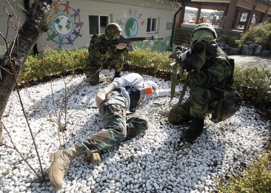 3月11日,在韓國(guó)鎮(zhèn)海海軍基地,韓美兩國(guó)的海軍陸戰(zhàn)隊(duì)舉行了聯(lián)合反恐軍事演習(xí)。