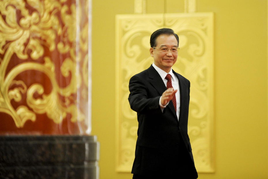 3月14日上午,國務(wù)院總理溫家寶在人民大會堂三樓金色大廳與采訪十一屆全國人大三次會議的中外記者見面并回答記者提出的問題。溫家寶總理闊步走進(jìn)金色大廳。中新社記者 廖攀 攝 圖片來源:中國新聞網(wǎng)
