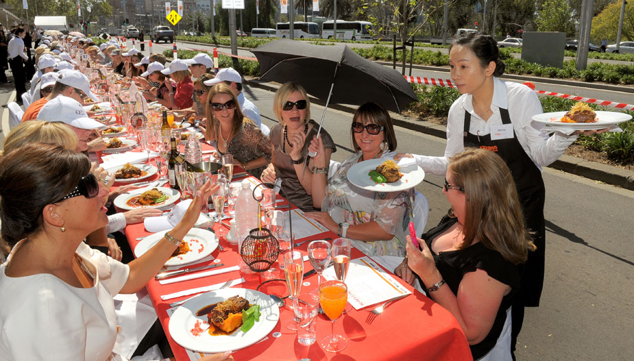 近日,澳大利亞墨爾本,人們在號稱“世界上最長的午餐”活動中享受美味佳肴。圖片來源:中國新聞網(wǎng)