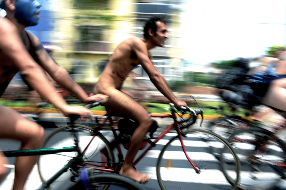 秘魯民眾“裸體騎單車” 呼吁改善交通