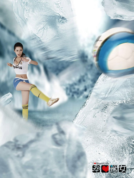 靚模潘霜霜最近拍攝了一組身穿皇馬足球隊(duì)8號(hào)隊(duì)服的性感寫真,其中包括在場(chǎng)上模仿C羅踩單車過人,最后被踢傷和踢碎玻璃的表情。潘霜霜現(xiàn)已簽約保利博納,正式進(jìn)軍電影圈。圖片來源:中國新聞網(wǎng)