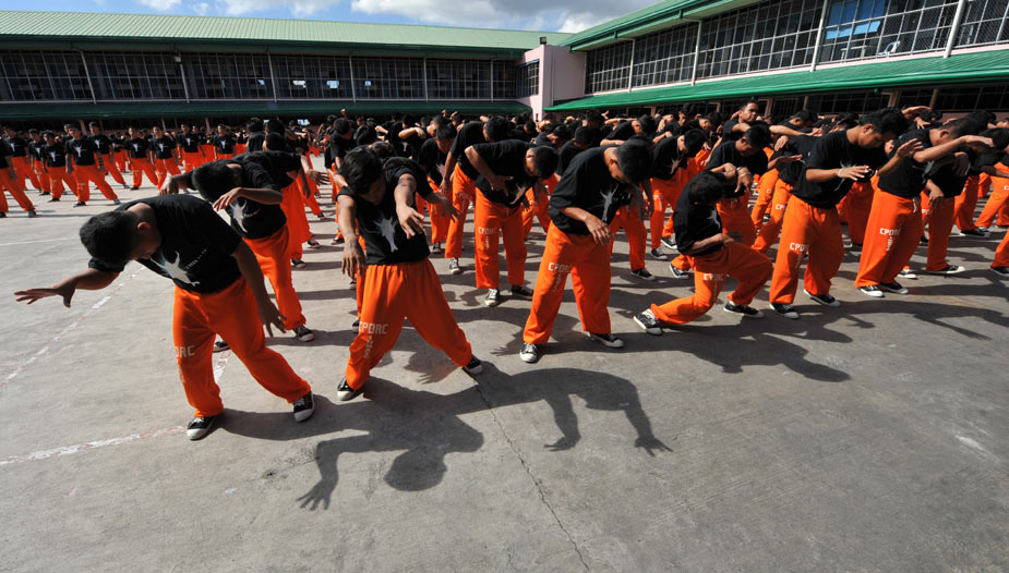 近日,在菲律賓超過1500名囚犯在監(jiān)獄中集體學習已故歌壇巨星杰克遜的舞蹈,以此來激起他們生活的斗志。圖片來源:中國新聞網
