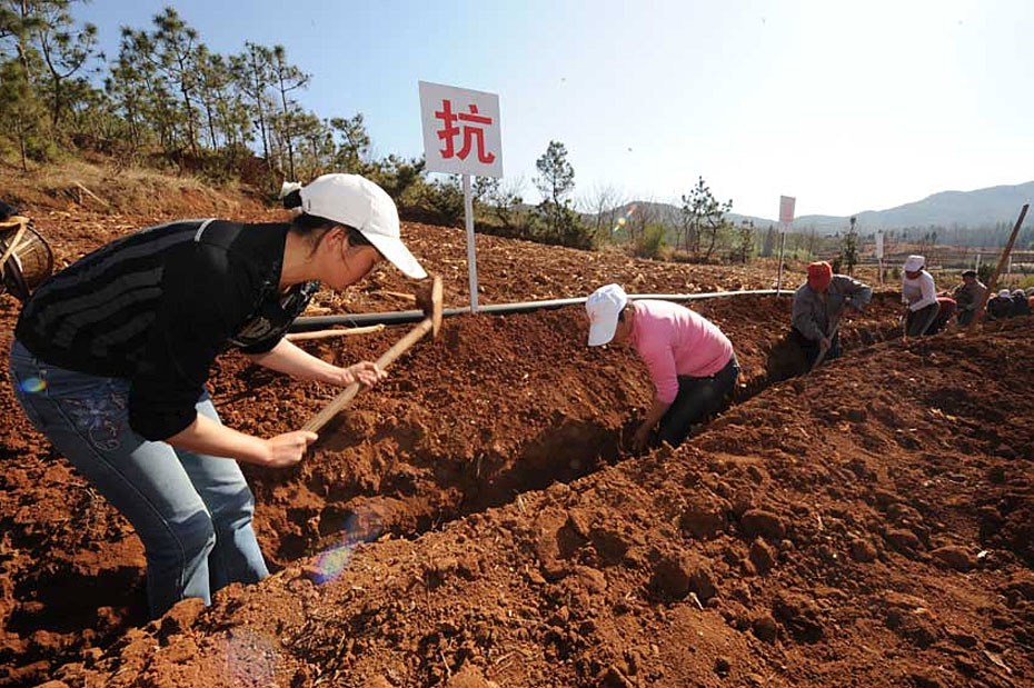 中國西南部分地區(qū)遭受了六十年甚至百年一遇的特大旱災(zāi),給春耕備耕帶來不利影響。受災(zāi)各地民眾在當(dāng)?shù)卣膸ьI(lǐng)下打響了萬眾一心降伏旱魃的戰(zhàn)役。