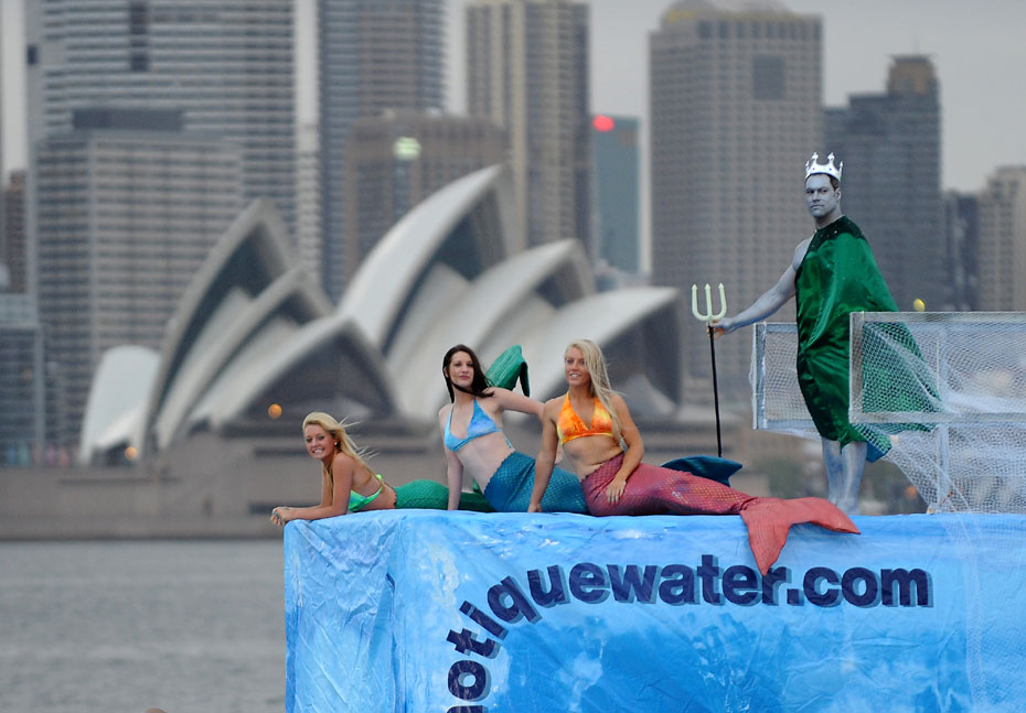 2010年3月22日,是第18個“世界水日”,今年聯(lián)合國將“世界水日”的主題定為:保障清潔水源,創(chuàng)造健康世界,意在強(qiáng)調(diào)水資源的數(shù)量和質(zhì)量都面臨著威脅。本周也是第23個“中國水周”,宣傳主題是“嚴(yán)格水資源管理,保障可持續(xù)發(fā)展”。目前,中國西南5省區(qū)正在遭遇一場百年難遇的大旱,而與此同時,16個省份約2.7億人遭受沙塵侵?jǐn)_。因此,這個世界水日的到來更加引發(fā)人們對水資源及節(jié)水話題的凝重思考和深度追問。圖為3月22日,海洋生物學(xué)家打扮成美人魚和海神模樣坐在6米長的“冰山”號船上經(jīng)過澳大利亞悉尼港口大橋附近水面,以紀(jì)念世界水日。