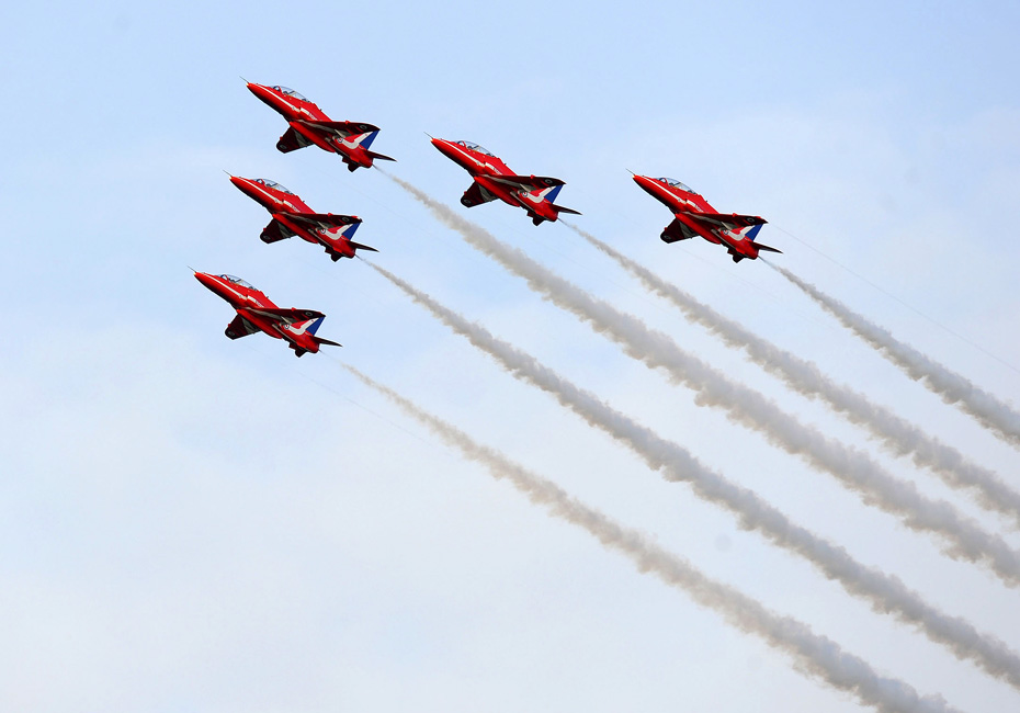 圖為英國“紅箭”特技飛行隊訓(xùn)練的資料圖片。