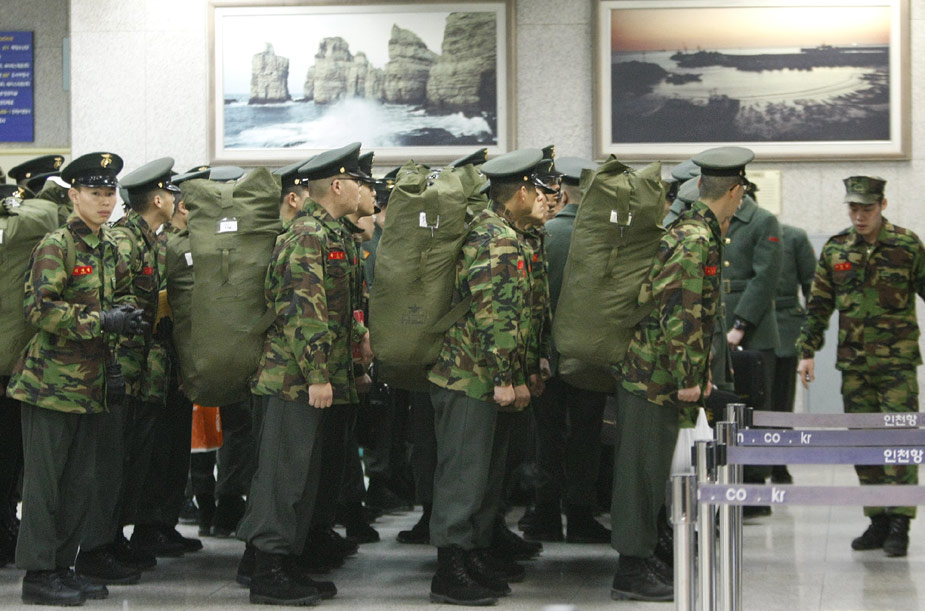 首爾當(dāng)?shù)貢r間26日晚9點(diǎn)45分許,在韓國西部海域執(zhí)行警戒任務(wù)的天安艦(1200噸級)因不明原因事故,船底被炸開洞,船尾開始下沉。天安艦上共有104人,韓國巡邏艇和直升飛機(jī)迅速展開救援行動,事發(fā)5小時后,官員稱已救出58人,但因?yàn)閺?qiáng)風(fēng)和夜幕,救援行動進(jìn)展緩慢,其它人員仍下落不明。圖為韓國海軍海上救援隊正在整裝準(zhǔn)備出發(fā)。