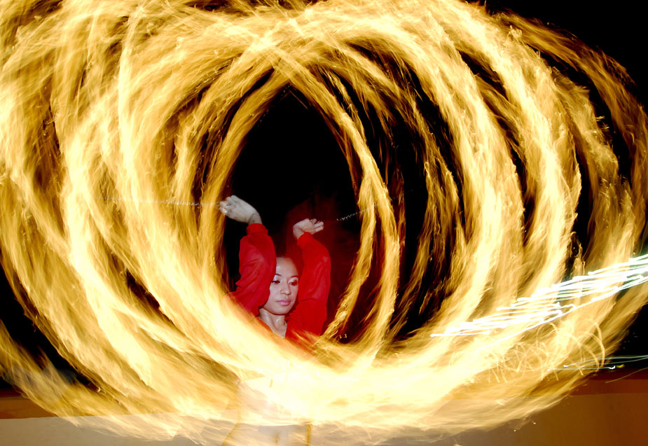 當(dāng)?shù)貢r(shí)間3月25日,在菲律賓馬尼拉,一名舞者在火焰中“熱舞”。