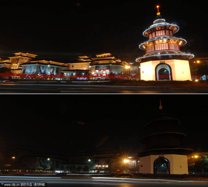 當日,世界自然基金會倡導的“地球一小時”活動得到全世界100多個國家和地區(qū)響應。中國的北京、上海、長沙、香港等許多城市也加入到這一活動中。圖片來源:中國新聞網(wǎng)