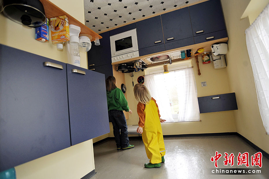3月30日,德國(guó)蓋托夫市“瘋狂的房子”面向公眾開放。該房屋整個(gè)顛倒里面的家具也是被釘在屋頂上的。圖片來源:中國(guó)新聞網(wǎng)
