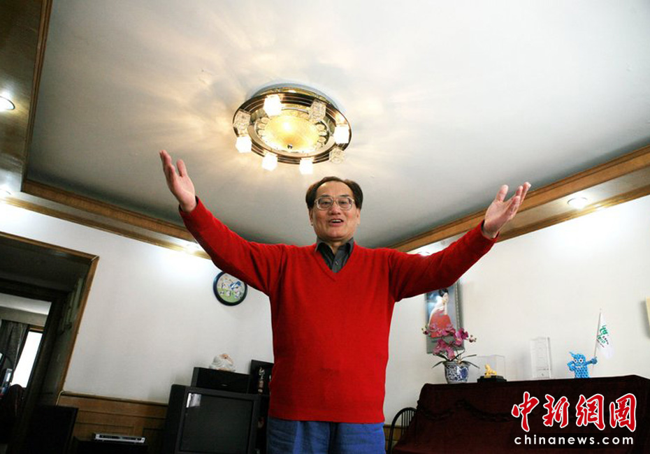 上海市靜安區(qū)曹家渡社區(qū)“世博人家”主人李宗榮向來訪賓客介紹自己的體育特色家庭。張波/CFP
