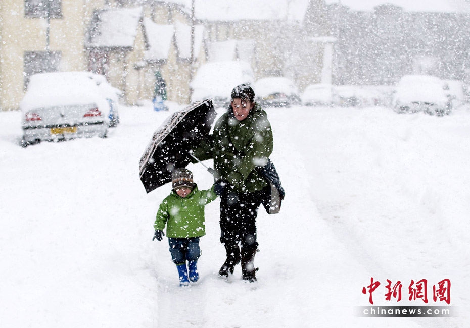 當(dāng)?shù)貢r(shí)間3月31日,英國(guó)北部部分地區(qū)遭暴風(fēng)雪襲擊,導(dǎo)致數(shù)萬(wàn)戶家庭斷電,有12名學(xué)生在惡劣天氣引發(fā)的交通事故中受傷。圖片來(lái)源:中國(guó)新聞網(wǎng)