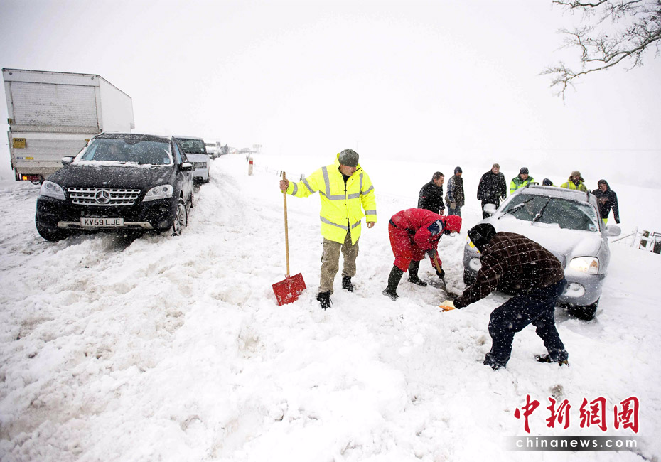 當?shù)貢r間3月31日,英國北部部分地區(qū)遭暴風雪襲擊,導(dǎo)致數(shù)萬戶家庭斷電,有12名學(xué)生在惡劣天氣引發(fā)的交通事故中受傷。圖片來源:中國新聞網(wǎng)