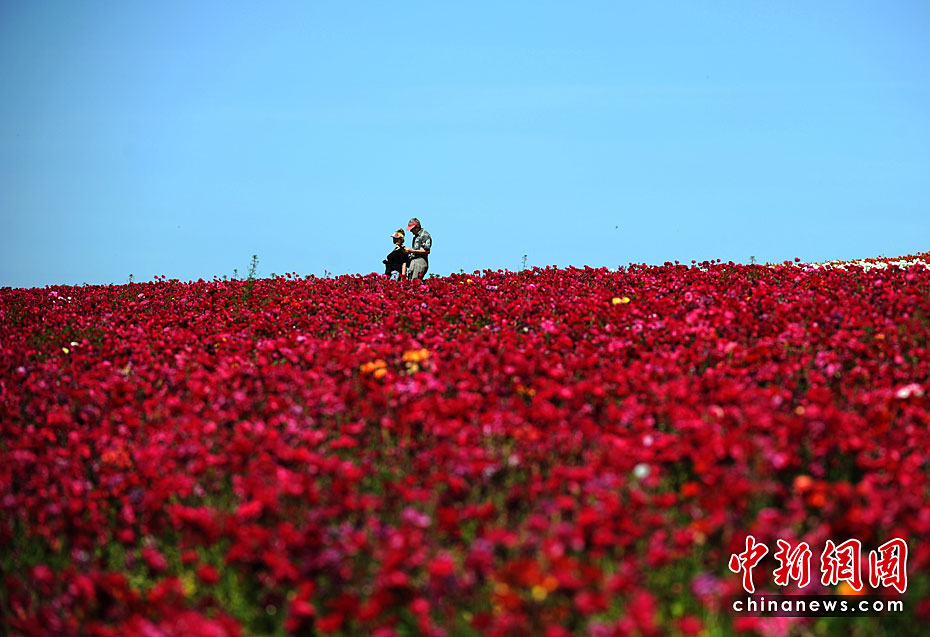 美國(guó)加利福尼亞州圣迭戈的卡爾斯巴德花田近日繁花盛開(kāi),姹紫嫣紅的花朵整齊地鋪滿在五十英畝的土地上,一望無(wú)垠的花海,美不勝收。圖片來(lái)源:中國(guó)新聞網(wǎng)
