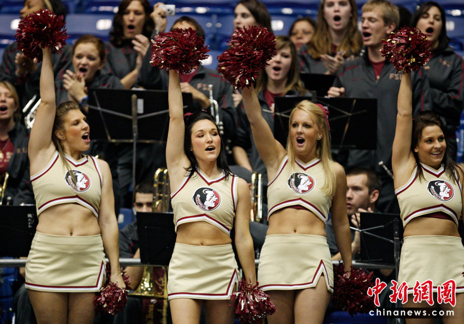 啦啦隊(duì)的歷史可追溯到原始部落時(shí)期,戰(zhàn)士們狩獵凱旋歸來(lái)時(shí),人們給予歡呼及鼓勵(lì)的動(dòng)作。最初的拉拉隊(duì)要追溯到19世紀(jì)80年代的美國(guó)大學(xué)校園,當(dāng)時(shí)的形式是在大學(xué)里的橄欖球賽上,一位領(lǐng)隊(duì)站在一大群人前面領(lǐng)導(dǎo)他們?yōu)樽约旱那蜿?duì)吶喊助威。圖片來(lái)源:中國(guó)新聞網(wǎng)