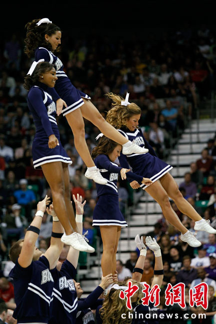 啦啦隊的歷史可追溯到原始部落時期,戰(zhàn)士們狩獵凱旋歸來時,人們給予歡呼及鼓勵的動作。最初的拉拉隊要追溯到19世紀80年代的美國大學(xué)校園,當(dāng)時的形式是在大學(xué)里的橄欖球賽上,一位領(lǐng)隊站在一大群人前面領(lǐng)導(dǎo)他們?yōu)樽约旱那蜿爡群爸。圖片來源:中國新聞網(wǎng)