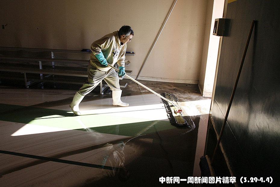 周五(2日),美國(guó)羅得島州東部的城市克蘭斯頓遭遇洪水襲擊。圖為工作人員正在清理積水。
